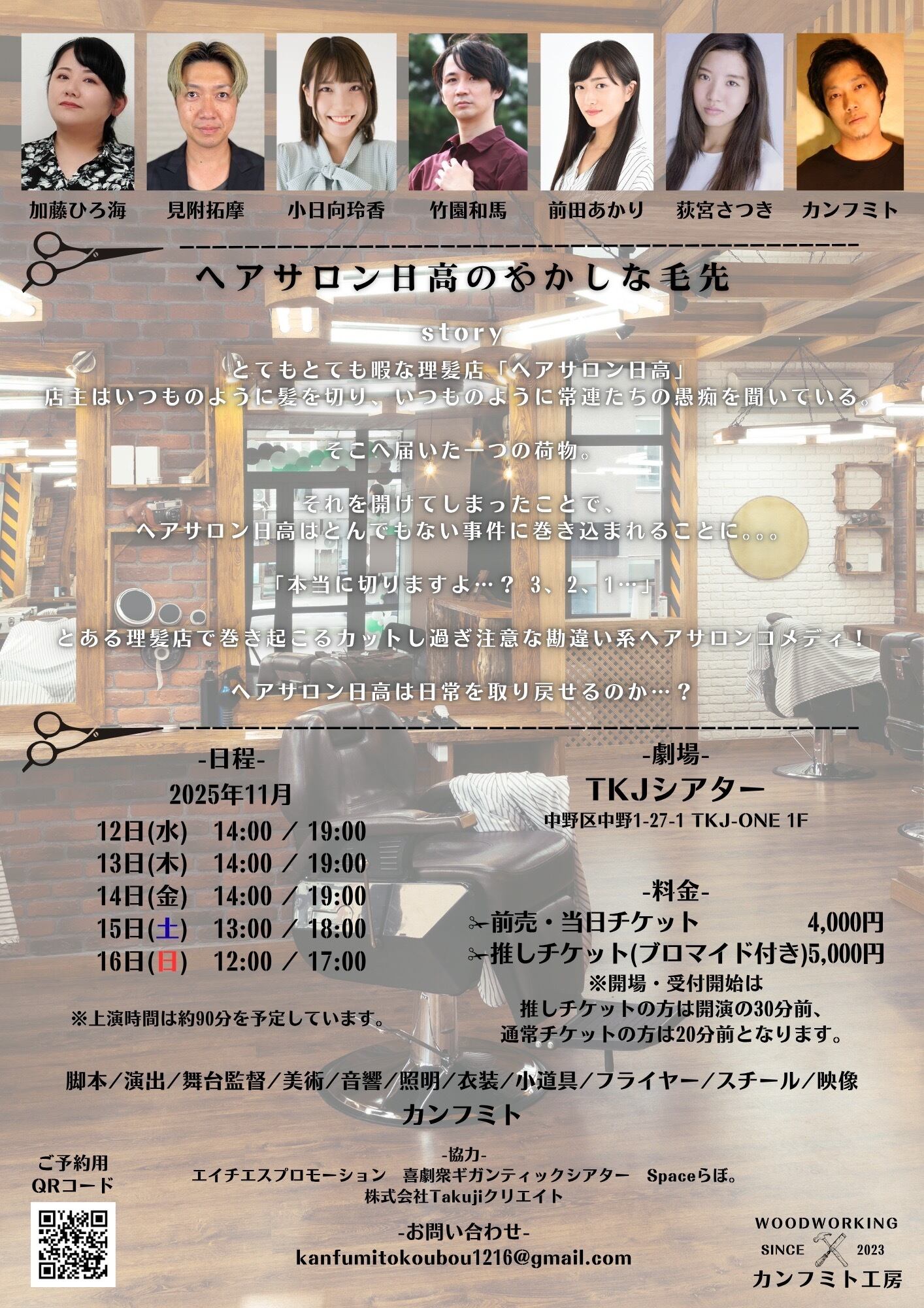 2025年11月12日〜16日までTKJシアターにて上演した、【ヘアサロン日高のおかしな毛先】の公演アーカイブ配信映像です!視聴期限は無期限です(コンテンツの終了に伴う動画削除などは例外とさせて頂きます)