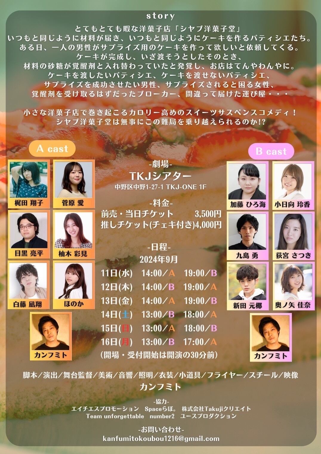 2024年9月11日〜16日までTKJシアターにて上演した、【シヤブ洋菓子堂のおかしなケーキ】の公演アーカイブ配信映像です!視聴期限は無期限です(コンテンツの終了に伴う動画削除などは例外とさせて頂きます)
